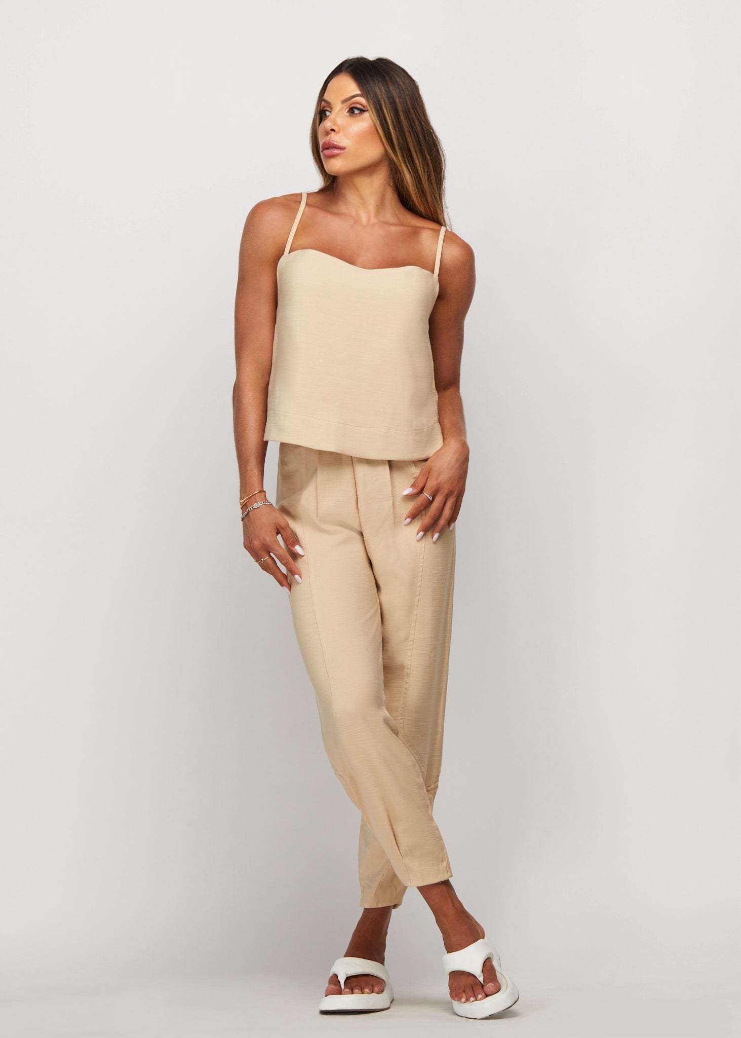 Regata com alças ajustáveis nas costas e decote quadrado.